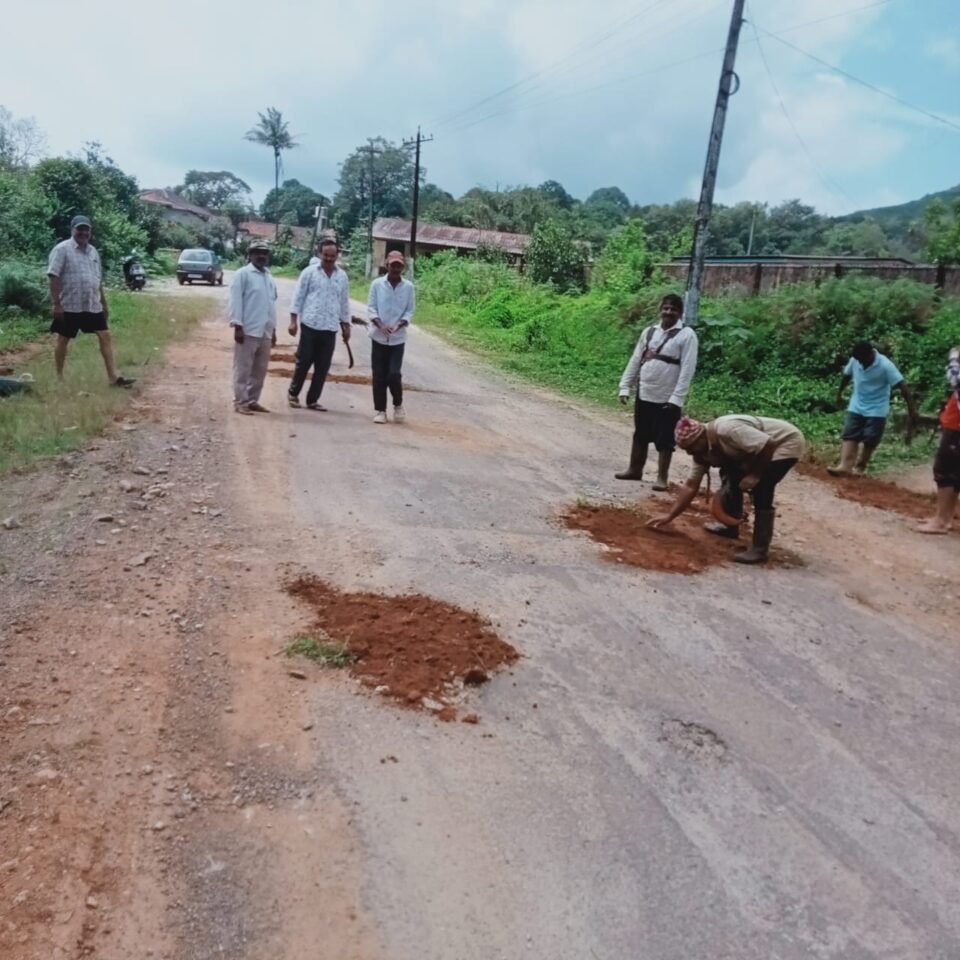 ವನಗೂರು ಗ್ರಾಮಸ್ಥರಿಂದ ಅವರ ಗ್ರಾಮದಲ್ಲಿ ಆದ ರಸ್ತೆ ಗುಂಡಿಗಳನ್ನು ಮುಚ್ಚುವ ಕಾರ್ಯ ಮಾಡಿದರು.