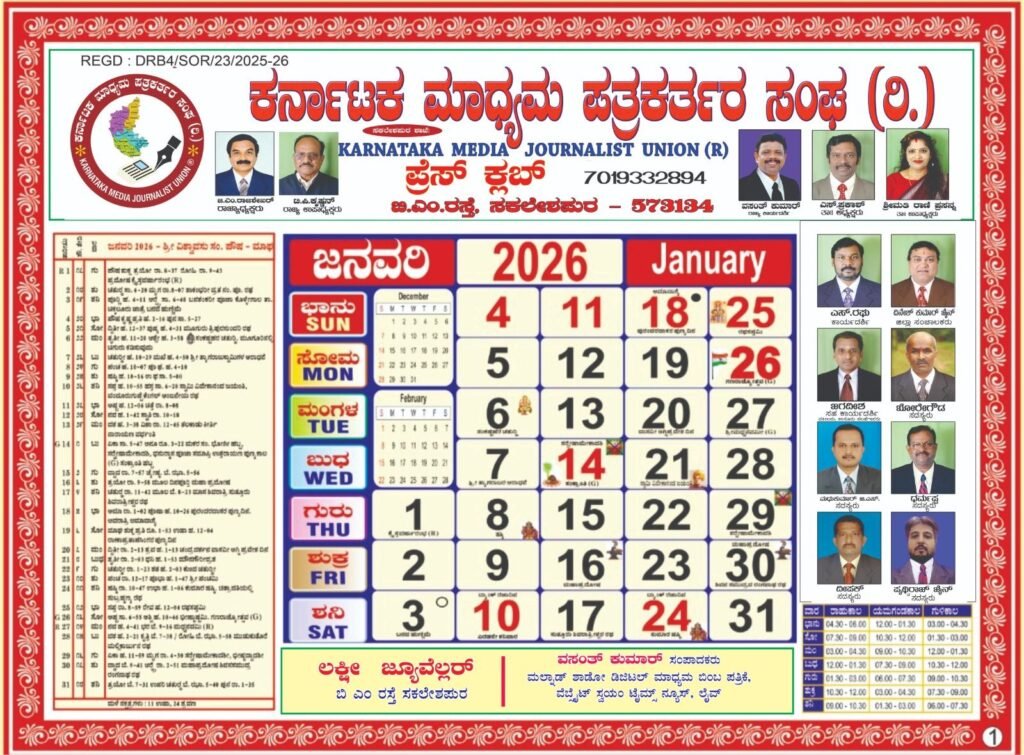 ಸಕಲೇಶಪುರ ತಾಲೂಕು ಮಾಧ್ಯಮ ಪತ್ರಕರ್ತರ ಸಂಘದ ವತಿಯಿಂದ 2026ರ ಕ್ಯಾಲೆಂಡರ್ ಬಿಡುಗಡೆ ಕಾರ್ಯಕ್ರಮ ನಡೆಯಿತು.