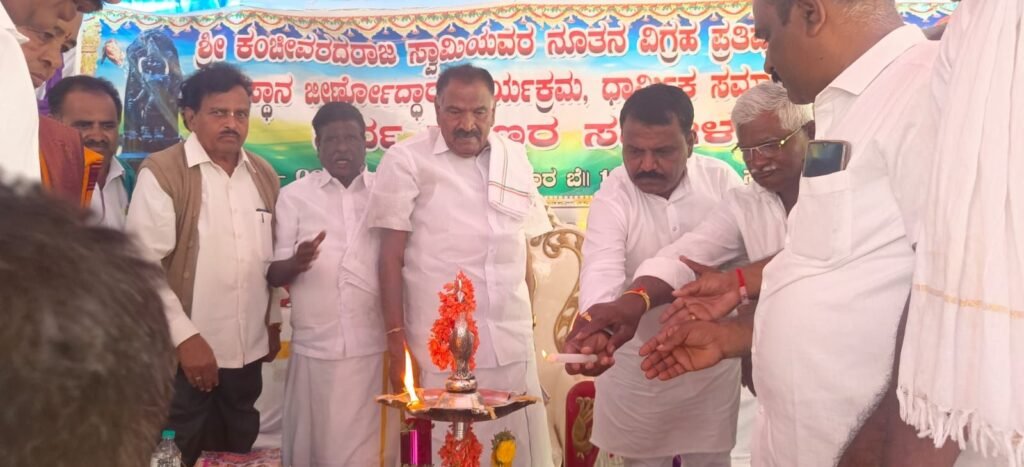 ಕರ್ನಾಟಕ ಗೃಹ ಮಂಡಳಿ ಅಧ್ಯಕ್ಷರು ಹಾಗೂ ಅರಸೀಕೆರೆ ವಿಧಾನಸಭಾ ಕ್ಷೇತ್ರದ ಜನಪ್ರಿಯ ಶಾಸಕರಾದ ಕೆ.ಎಂ ಶಿವಲಿಂಗೇಗೌಡರು ಅರಸೀಕೆರೆ ತಾಲೂಕಿನ ಚಿಕ್ಕಮ್ಮನಹಳ್ಳಿ ಗ್ರಾಮದ ಶ್ರೀ ಕಂಚೀವರದರಾಜ ಸ್ವಾಮಿಯವರ ನೂತನ ವಿಗ್ರಹ ಪ್ರತಿಷ್ಠಾಪನೆ ಹಾಗೂ ದೇವಸ್ಥಾನದ ಜೀರ್ಣೋದ್ಧಾರ ಕಾರ್ಯಕ್ರಮ, ಧಾರ್ಮಿಕ ಸಮಾರಂಭ ಮತ್ತು ಸರ್ವ ಶರಣರ ಸಮ್ಮೇಳನ ಕಾರ್ಯಕ್ರಮದಲ್ಲಿ ಭಾಗವಹಿಸಿ ದೇವರ ಆಶೀರ್ವಾದ ಪಡೆದು ನಾಡಿನ ಒಳಿತಿಗಾಗಿ ಪ್ರಾರ್ಥಿಸಿದರು.