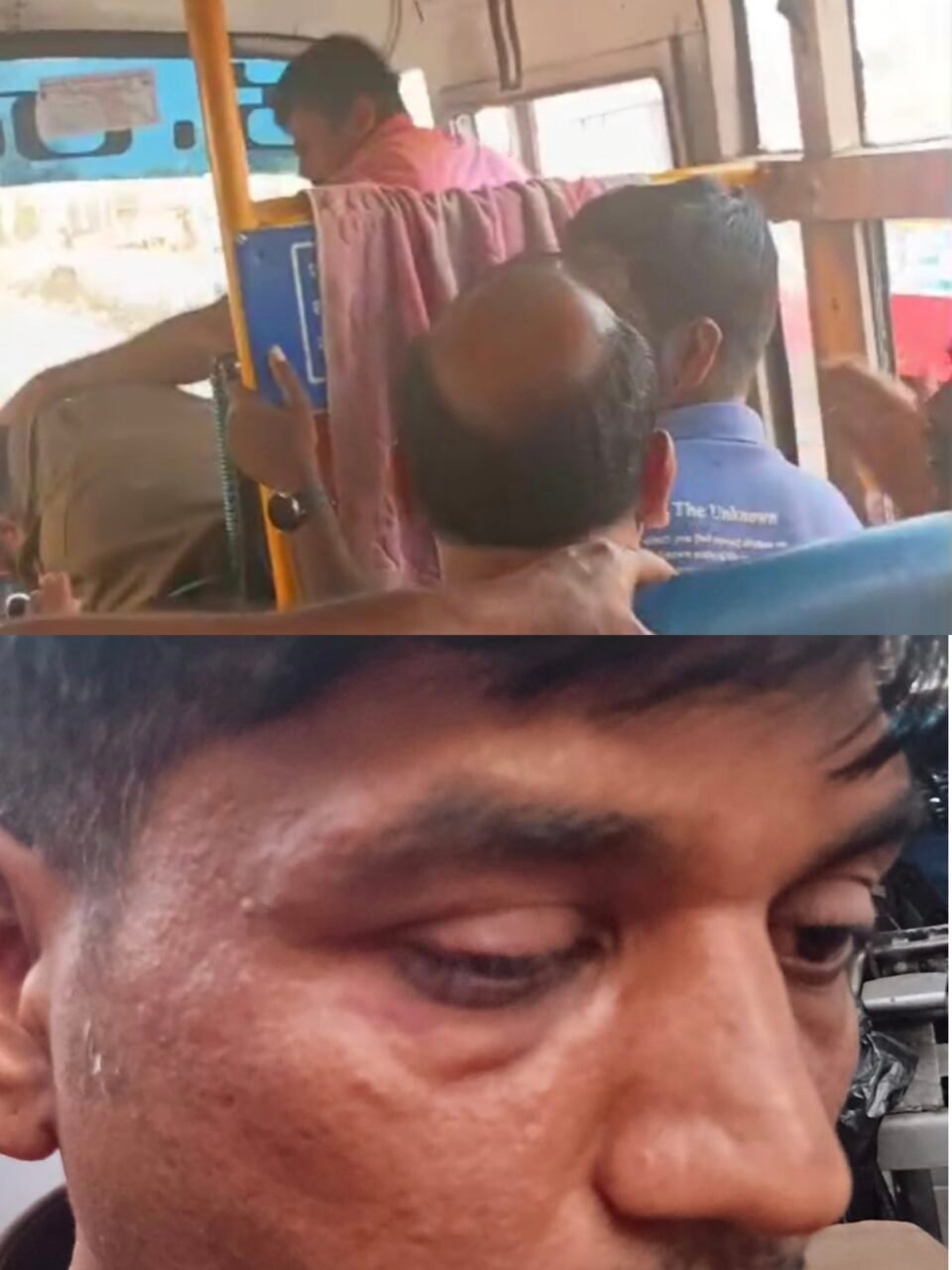 ವಿಪರ್ಯಾಸವೆಂದರೆ: ಚಾಲಕನ ಮೇಲೆ ಹಲ್ಲೆ ನಡೆಯುವಾಗ ಅಲ್ಲೇ ಇದ್ದ ಮಹಿಳೆ “ಚಾಲಕನ ತಪ್ಪಿಲ್ಲ” ಎಂದು ಹೇಳಿದರೂ ಸಹ, ಆಕ್ರೋಶದಲ್ಲಿದ್ದ ಆಕೆಯ ಪತಿ ಕಿವಿಗೊಡದೆ ತನ್ನ ಪ್ರತಾಪ ತೋರಿದ್ದಾನೆ.