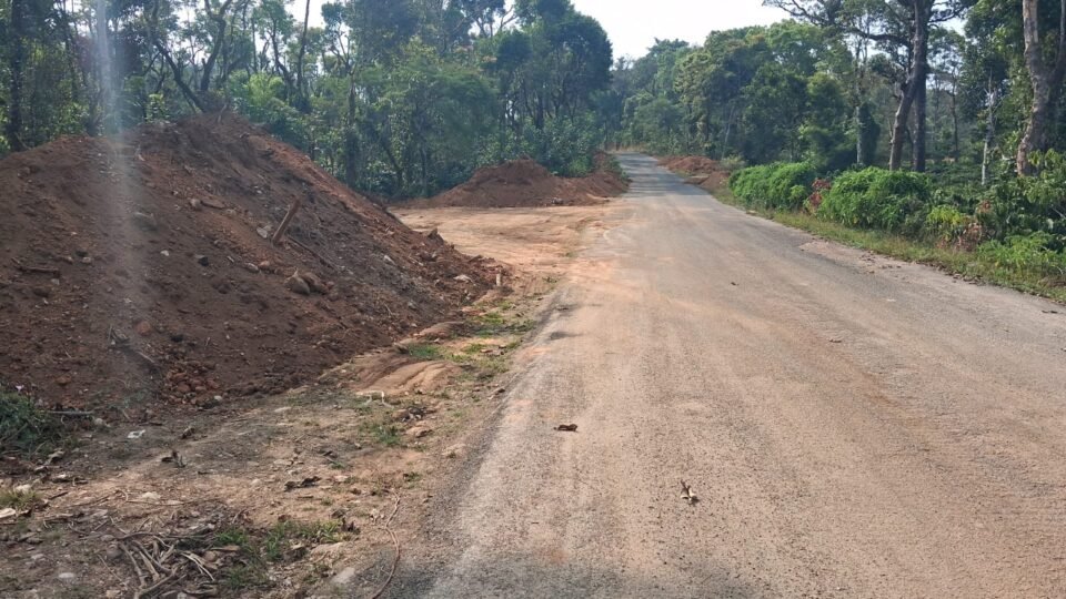 ರಸ್ತೆ ಬದಿಗೆ ಅವೈಜ್ಞಾನಿಕ ವಾಗಿ ಮಣ್ಣು ಹಾಕಿರುವುದು