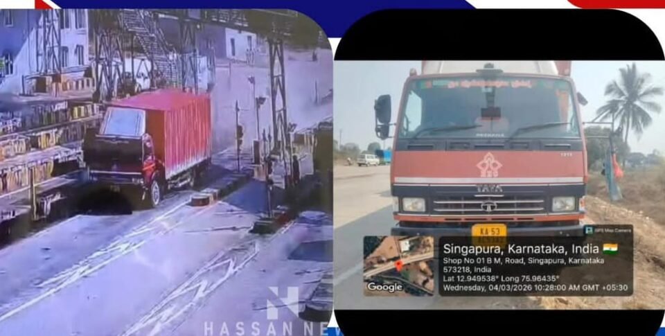 ಆಲೂರು: ರಾಷ್ಟ್ರೀಯ ಹೆದ್ದಾರಿ 75ರಲ್ಲಿ ಕುಡಿದ ಅಮಲಿನಲ್ಲಿ ಲಾರಿ ಚಲಾಯಿಸಿದ ಚಾಲಕರು ಬೈಕ್ ಸವಾರನಿಗೆ ಡಿಕ್ಕಿ ಹೊಡೆದು, ಟೋಲ್ ಗೇಟ್ ಜಖಂ ಮಾಡಿ ಪರಾರಿಯಾಗಲು ಯತ್ನಿಸಿದ ಘಟನೆ ನಡೆದಿದೆ.