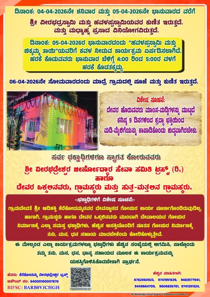 ಶ್ರೀ ಆದಿಶಕ್ತಿ ಕೆರೆ ಕೋಡಮ್ಮ ಶ್ರೀ ವೀರ ಭದ್ರೇಶ್ವರ ಸೇವಾ ಸಮಿತಿ ಟ್ರಸ್ಟ್