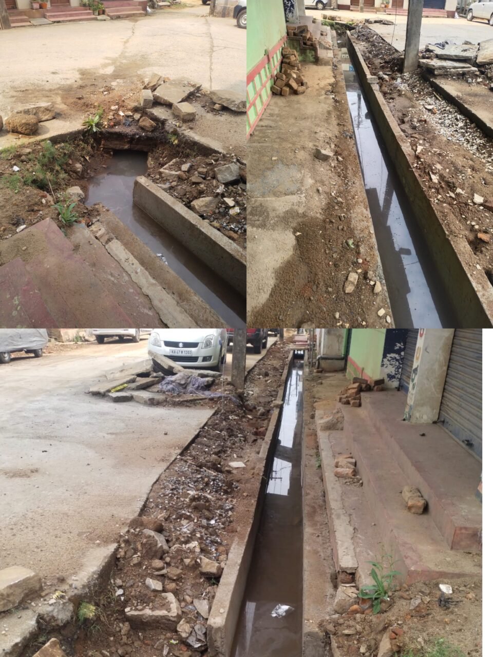 ಈ ಕಾಮಗಾರಿ ಮುಗಿದಿದೆ. ಆದರೆ ಚರಂಡಿಯಲ್ಲಿ ಹರಿದು ಬರುವ ನೀರು ಮುಂದೆ ಹೋಗುವ ಸ್ಥಳದಲ್ಲಿ ಅಂಡರ್ ಗ್ರೌಂಡ್ ಕಾಲುವೆಯಲ್ಲಿ ತ್ಯಾಜ್ಯ ಬ್ಲಾಕ್ ಆಗಿದ್ದು ಈಗ ಸುಮಾರು ಹತ್ತು ದಿನಗಳಿಂದ ನೀರು ಮುಂದಕ್ಕೆ ಹರಿದು ಹೋಗದೆ ಚರಂಡಿಯಲ್ಲಿ ತುಂಬಿಕೊಂಡಿರುತ್ತದೆ.
